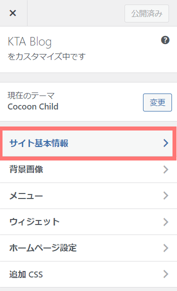 WordPress管理画面⇒外観⇒カスタマイズの順にクリックします